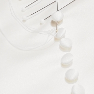 Hier habe ich einen Carmenträger aus Tüll genäht und mit Spitze verziert. Der Träger bekam Druckknöpfe für ein flexibles Tragen.