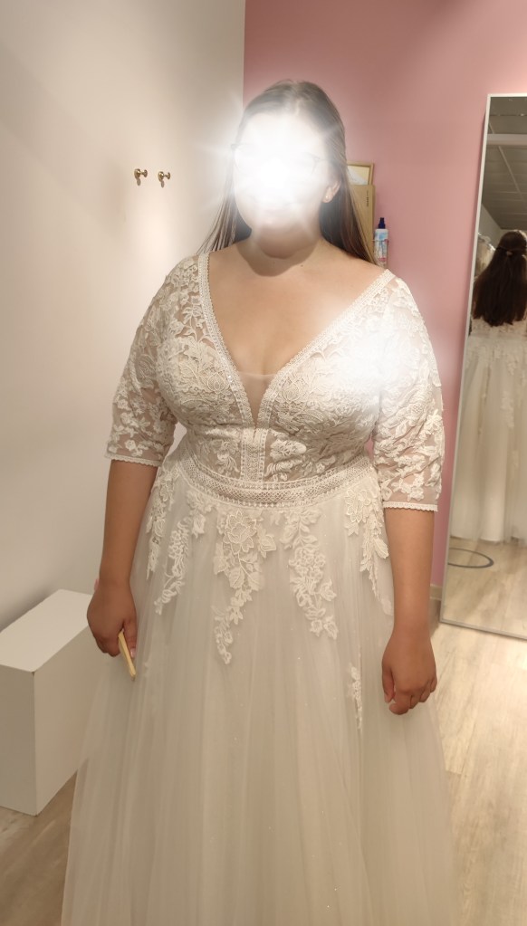 Diese Braut wünschte sich kleine Ärmel und einen geschlossenen Rücken mit Knopfleiste. Anschließend wurde alles mit passender Spitze zum Kleid besetzt.